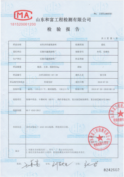 外墻乳膠漆檢驗(yàn)報(bào)告